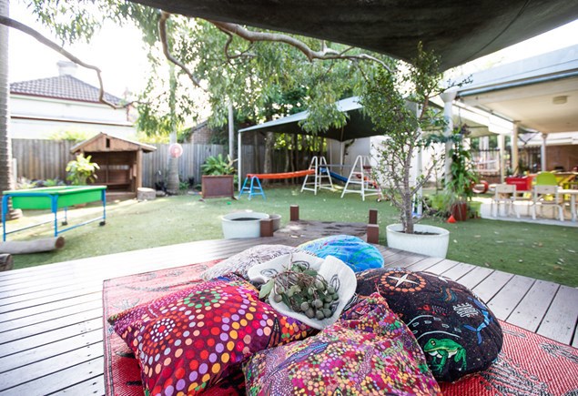 At SDN Randwick at UNSW Sydney, the central playground is surrounded by vast grassy lawns and gardens to explore.